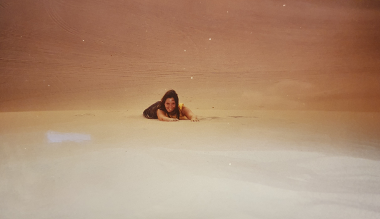 En el camino de descenso hicimos parada en el desierto de Huacachina. En este pueblo diminuto se encuentra un oasis rodeado de altas dunas donde, por aquel entonces, no había más que arena… y más arena. Era mi primer desierto, y ver el atardecer sentada en lo alto de una duna quedó grabado como una imagen definitiva en la memoria.